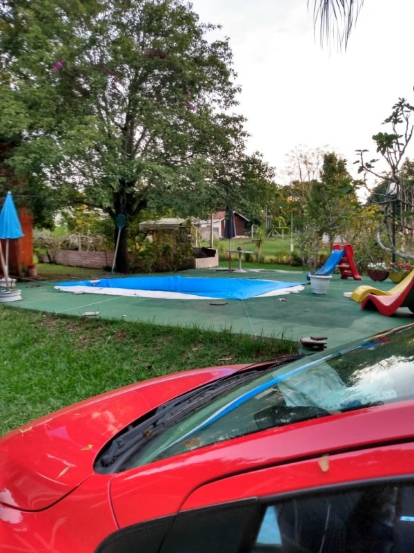 Casa em condomínio fechado, com uma estrutura privada de lazer completa, em uma área de 3.000,00 m², a casa , possui 4 dormitórios, sendo uma siute, sala com lareira, cozinha, (2) dois banheiros, área de serviço e garagem para (2) dois carros. Possui também , piscina, quadras esportivas , churrasqueira , pátio e galpões.