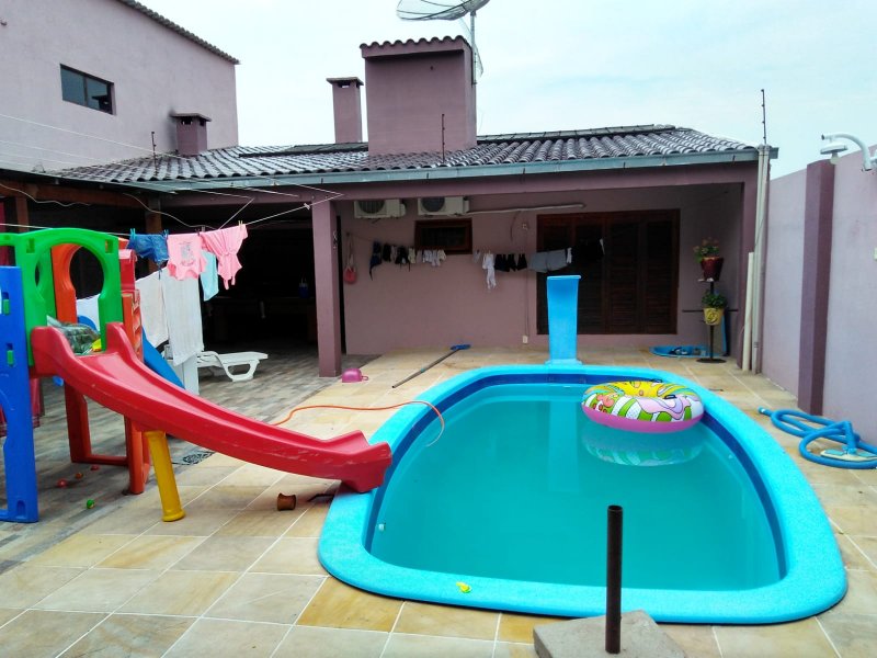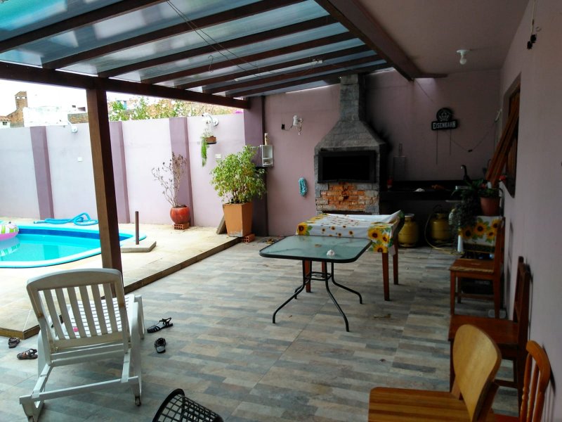 Bélissima casa,alto padrão de construção, semi mobiliada,, pátio com piscina,e churrasqueira, possui (4) dormitóris, grandes, um deles uma suite enorme,com ar condicionado e rouparia, feita sob medida, todos dormitórios com sacada, piso laminado e rouparia , sala grande , com lareira. piso porcelanato, lavabo, cozinha grande , toda com móveis planejado de ótima qualidade e tampo de granito em toda bancada da cozinha, garagem para até (3) três carros, nos fundos da casa , possui um espaço que pode ser usado como um apt., com quarto ,sala banheiro, lavanderia,, excelente forno a lenha, salão de jogos